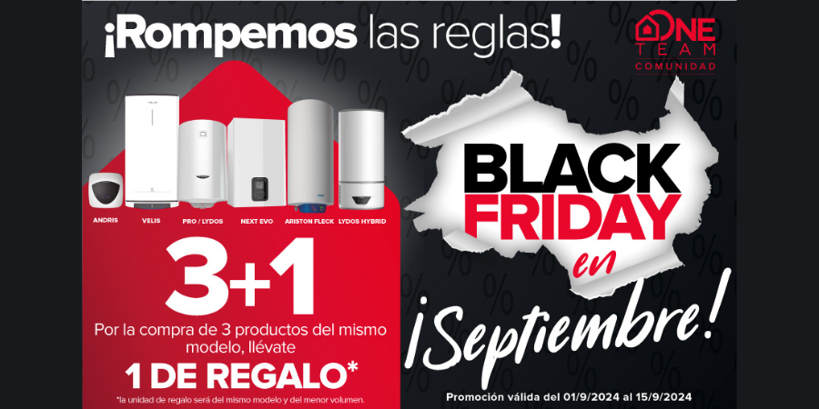 Ariston, líder global en soluciones de calefacción y agua caliente sanitaria, lanza una campaña exclusiva dirigida a los instaladores bajo el lema “Rompemos las reglas”. En un movimiento estratégico, la compañía adelanta el Black Friday a septiembre, ofreciendo una promoción única del 1 al 15 de septiembre. Durante este periodo, los instaladores podrán beneficiarse de una oferta 3+1: por la compra de 3 productos del mismo modelo, recibirán 1 unidad adicional sin coste, lo que les permitirá maximizar su rentabilidad y fortalecer sus proyectos de instalación.