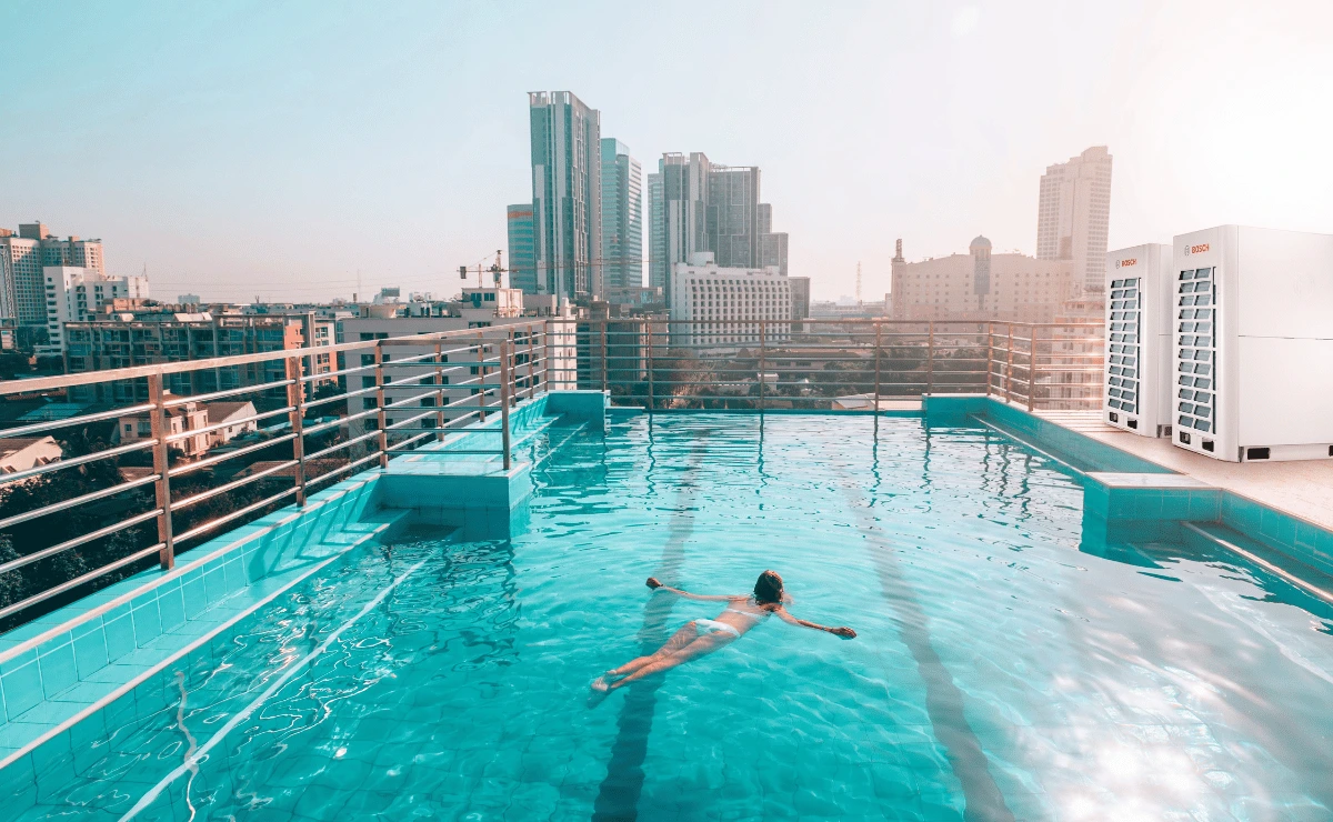 En el caso de los grandes complejos hoteleros y resorts, los sistemas de Flujo de Refrigerante Variable (VRF) son la opción más indicada. La serie Air Flux 6300 de Bosch se adapta excelentemente a las altas demandas de frío y calor, ofreciendo potencias de hasta 150 kW a través de la configuración en cascada de unidades exteriores. Esta tecnología permite una recuperación de calor eficiente, mejorando no solo la experiencia del huésped, sino también la eficiencia energética.