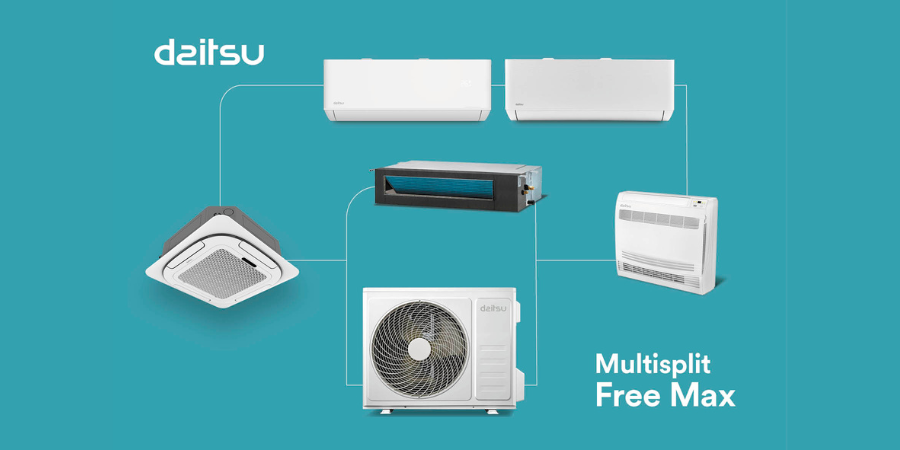 Eurofred, compañía multinacional especializada en confort térmico con soluciones de climatización, aerotermia y calidad del aire interior, presenta el nuevo sistema multisplit Daitsu Free Max, especialmente diseñado para proporcionar una climatización con la máxima eficiencia a viviendas y negocios minimizando el uso del espacio exterior.