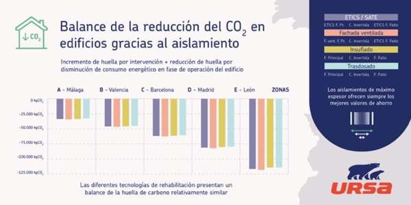 En todos los casos estudiados, el balance de huella de carbono es negativo, lo que indica una reducción efectiva de las emisiones. Además, el incremento de esta huella de carbono que se produce por estas intervenciones es superado ampliamente por la reducción del consumo energético que se logra gracias al aislamiento.