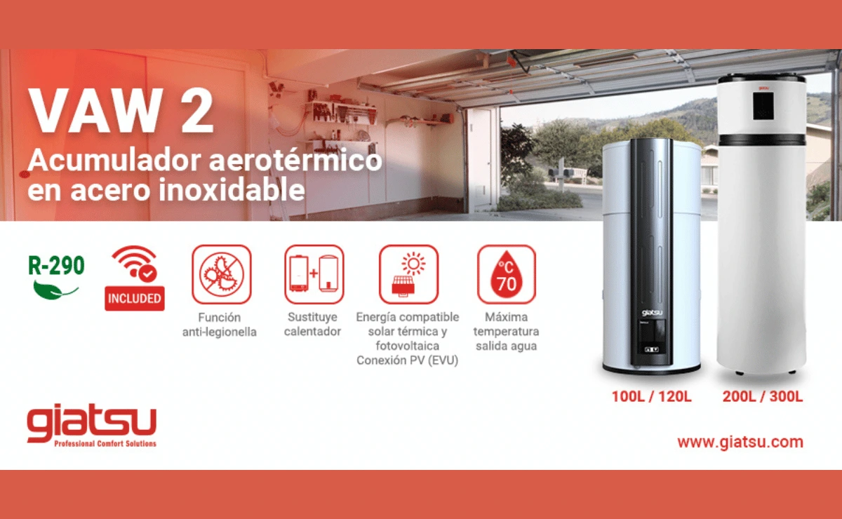 El VAW 2 de Giatsu es una solución innovadora para la producción de agua caliente sanitaria (ACS), combinando máxima eficiencia energética y larga durabilidad. Con distintas capacidades y compatibilidad con energía solar térmica y fotovoltaica, este equipo garantiza ahorro, sostenibilidad y confort.