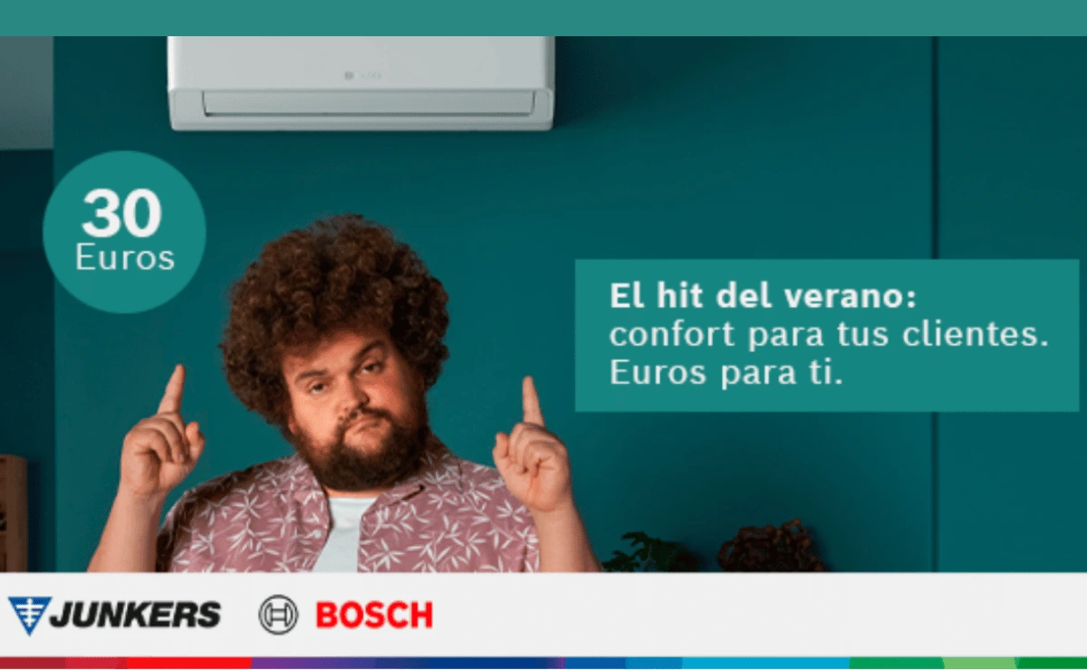 Bajo el claim “El hit del verano: confort para tus clientes, euros para ti”, la promoción vuelve a premiar la fidelidad de los instaladores registrados en el club, ofreciéndoles una ventaja que se nota en el bolsillo: por cada compra de unidad exterior de aire acondicionado de la gama Climate incluidas en la promoción, entre el 1 y el 31 de mayo de 2025, el profesional recibe 30 € en su tarjeta de socio Junkers Bosch plus.