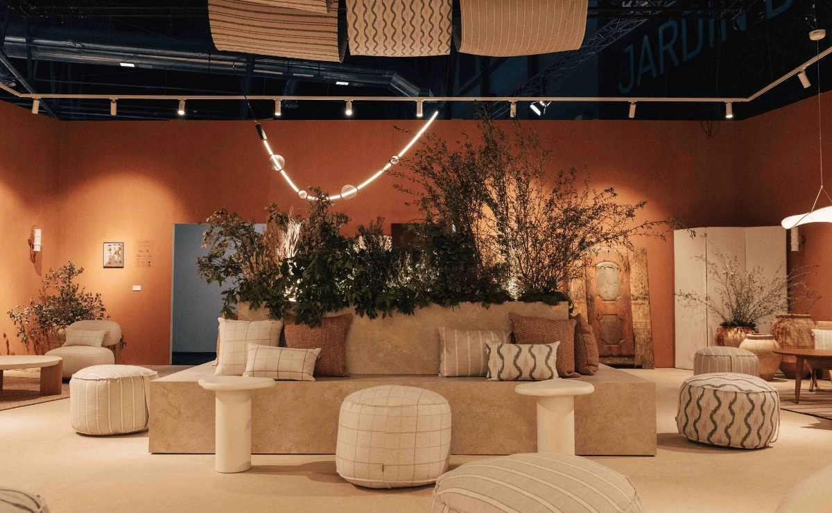 Concebida como un oasis dentro del recorrido ferial, la sala articula distintos ámbitos de pausa y encuentro. En este escenario, la iluminación desarrollada por Simon no se limita a resolver técnicamente el espacio, sino que construye escenas.